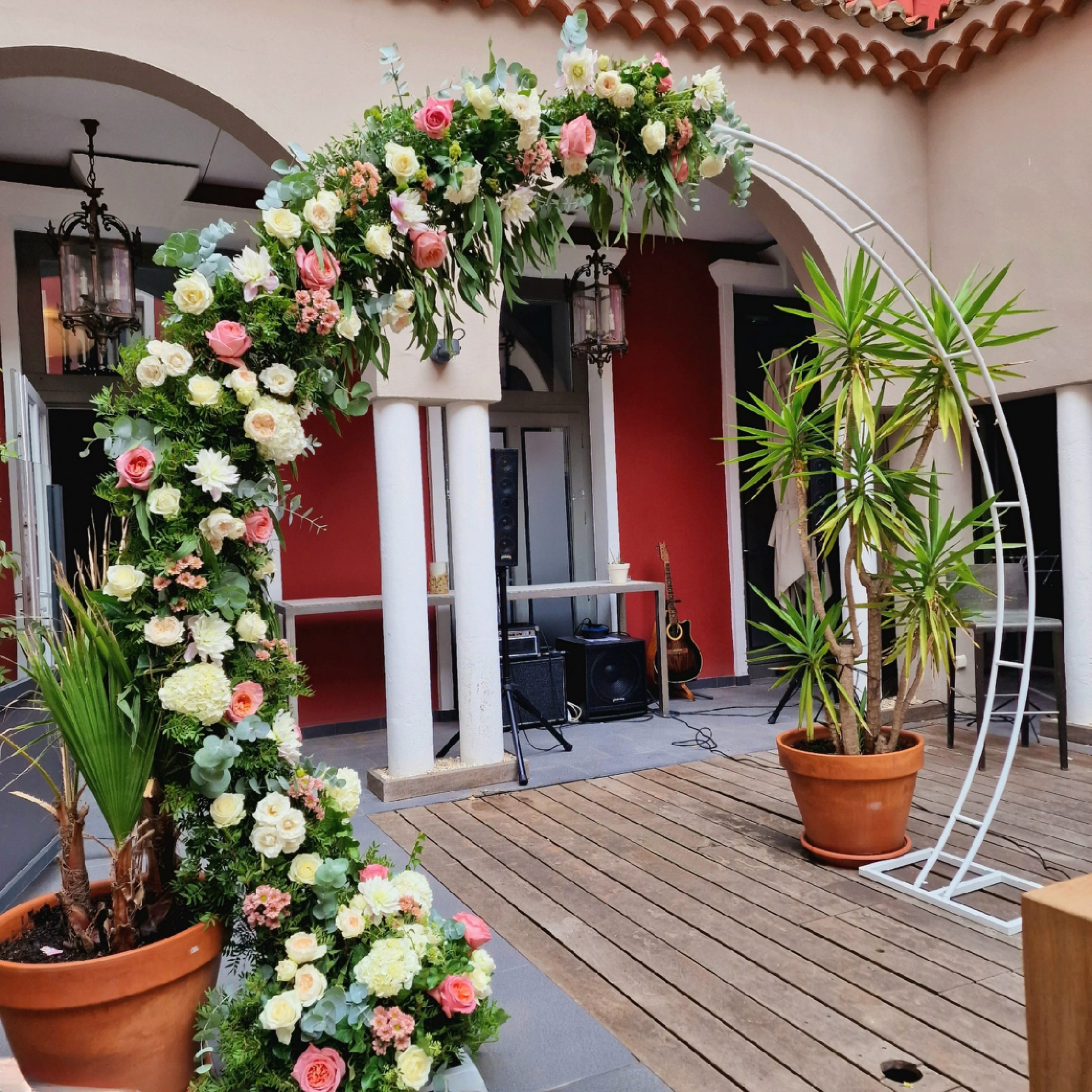 Nos prestations s’adaptent à toutes les idées et à tous les budgets : bouquet de mariée, décoration des lieux de cérémonie, réalisation d’arche florale, décoration de la salle de réception, bijoux floraux…