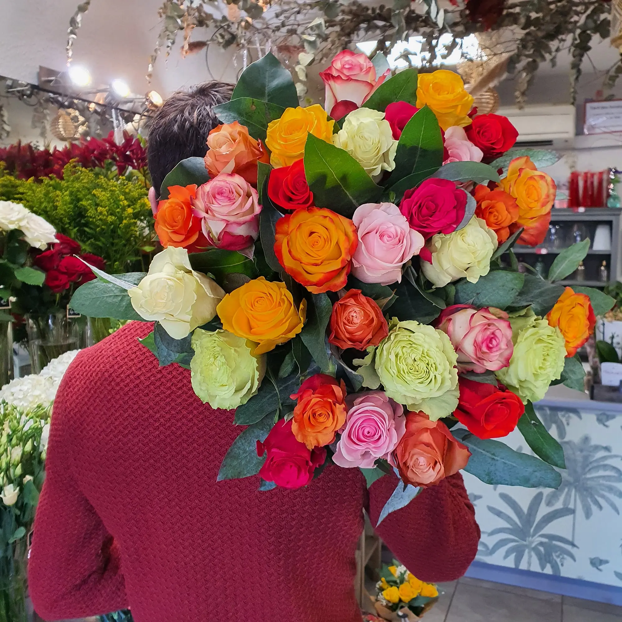 Un bouquet pour les passionné(e)s de belles roses ! Les couleurs sont mélangées pour le plus bel effet.