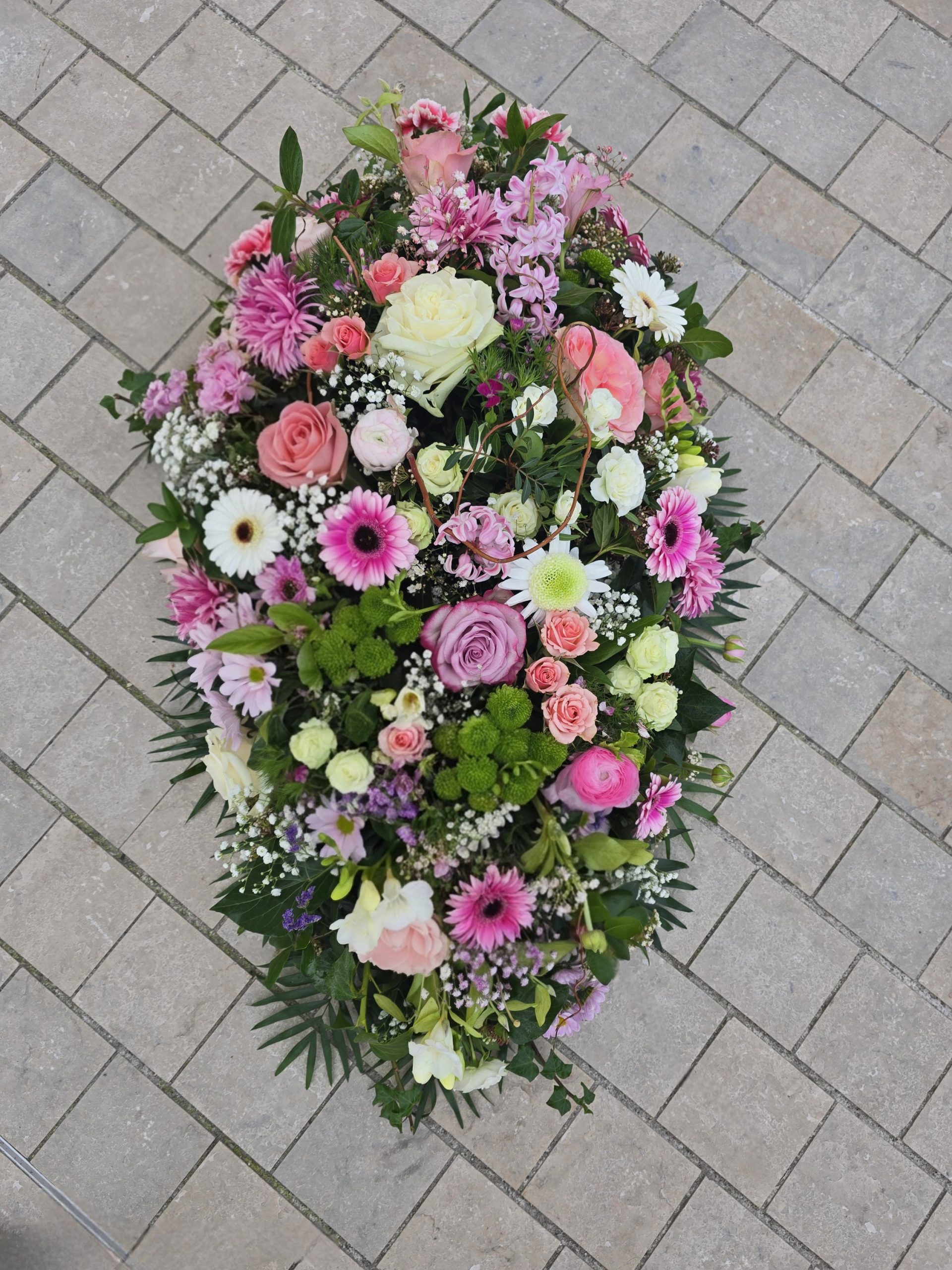 La pièce florale maîtresse pour rendre hommage à l'être cher disparu, ses couleurs expriment à la fois l'amour et le respect.